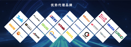 代理合作的品牌有:GWS、Espec、Weiss、BEVS、B&K、Ceprei、Keysight、Fluke、Tektronix、Rohde & Schwarz、testo、Mitutoyo、Hexagon、Mahr、Nikon、Asker、Imada、Zeiss、Tztek、Tohnichi、Hios、创牛、万测、众志、普源、同惠、致远、长盛、固纬、康斯特、成量等。